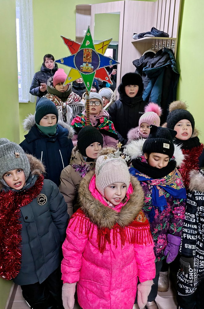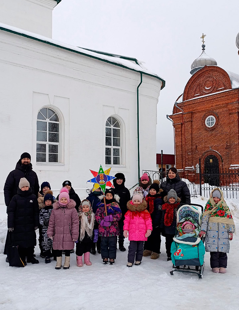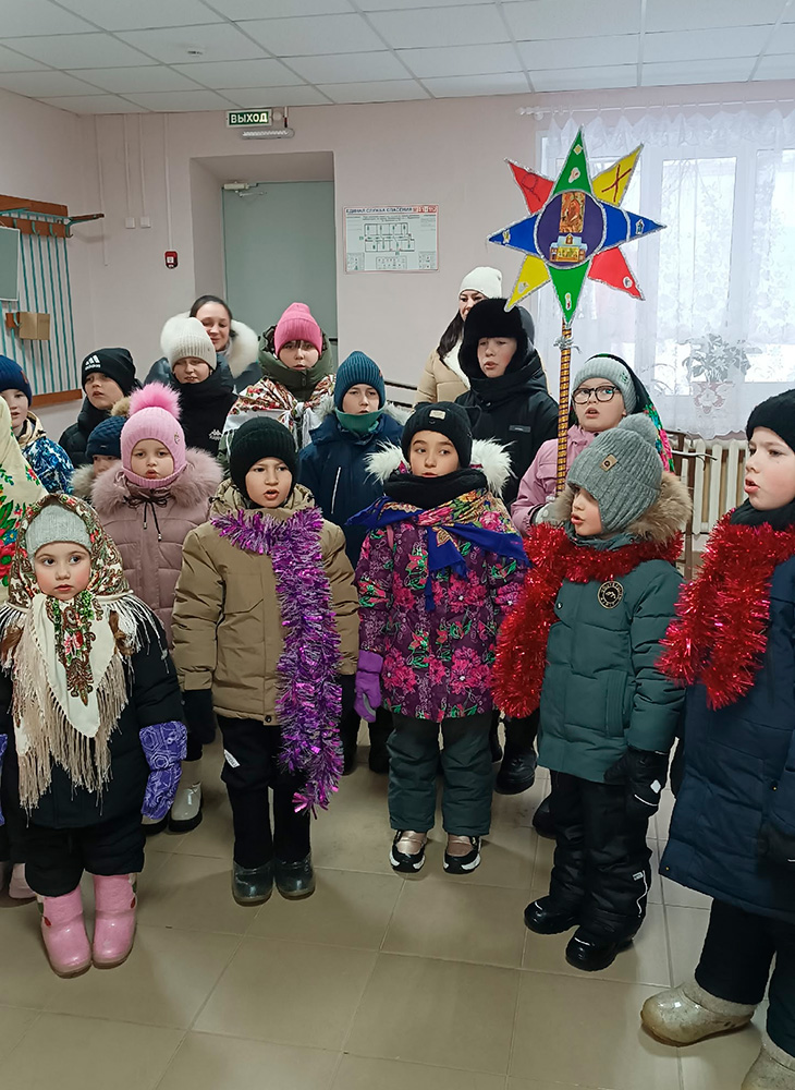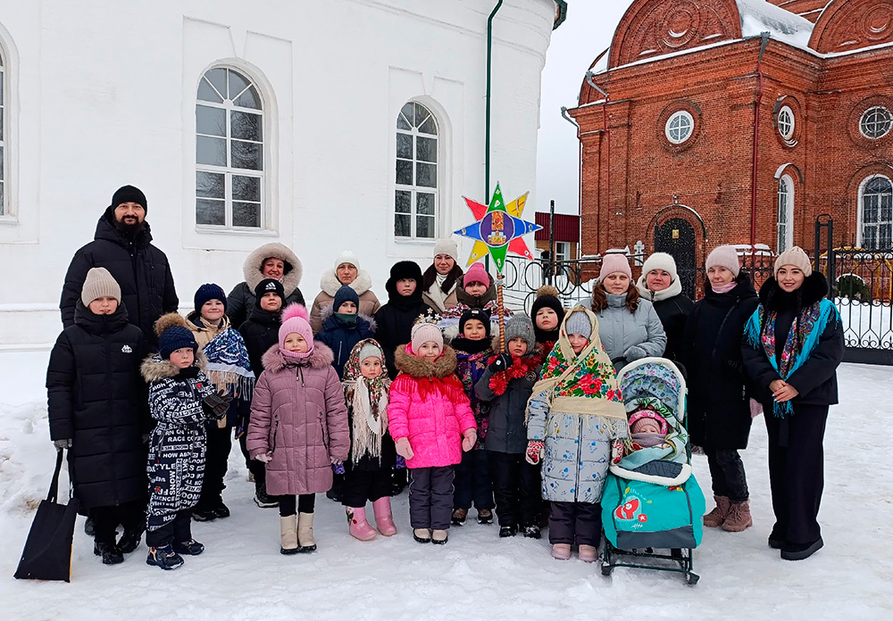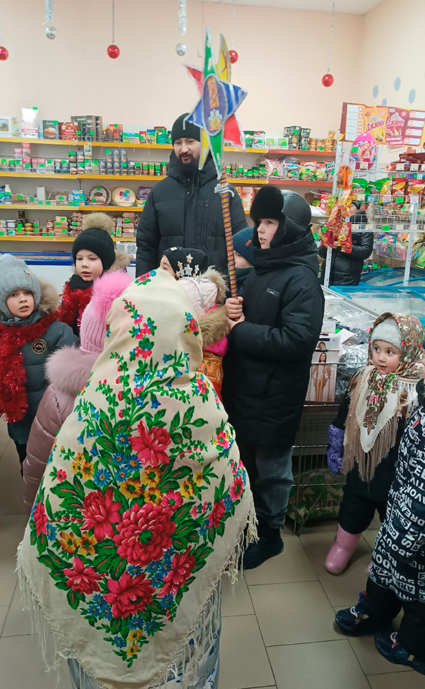 Ребята читали стихи, пели тропарь праздника и колядки. Возглавил святочное шествие настоятель местного прихода иерей Александр Малкин.
