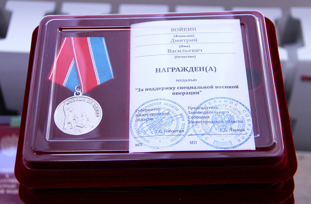За активную жизненную позицию при осуществлении профессиональной и общественной деятельности, направленной на помощь участникам специальной военной операции, поддержку членов их семей и вклад в увековечивание памяти погибших медали «За поддержку специальной военной операции» получил ряд арзамасских волонтеров. Среди награжденных – двое представителей благочиния Арзамасского района: активная прихожанка и одна из основательниц волонтерской группы поселка Выездное Антонина Кобзова, и помощник по взаимодействию с вооруженными силами и правоохранительными органами благочинного округа Арзамасского района протоиерей Олег Куря.