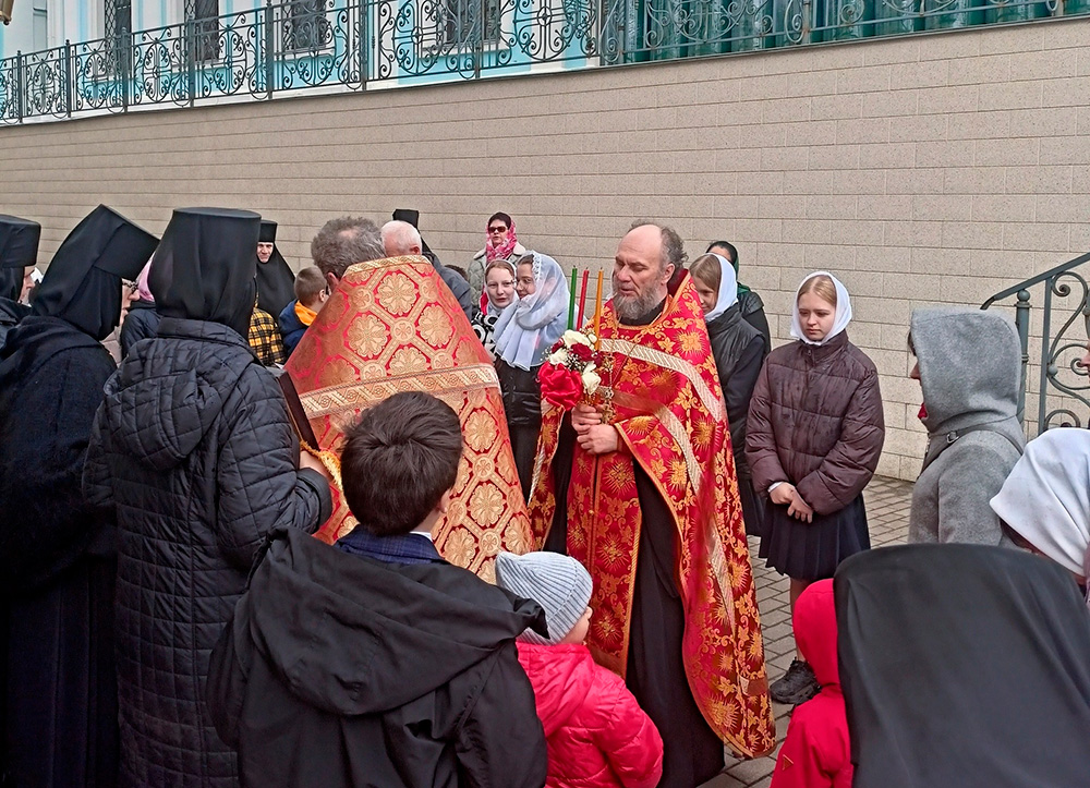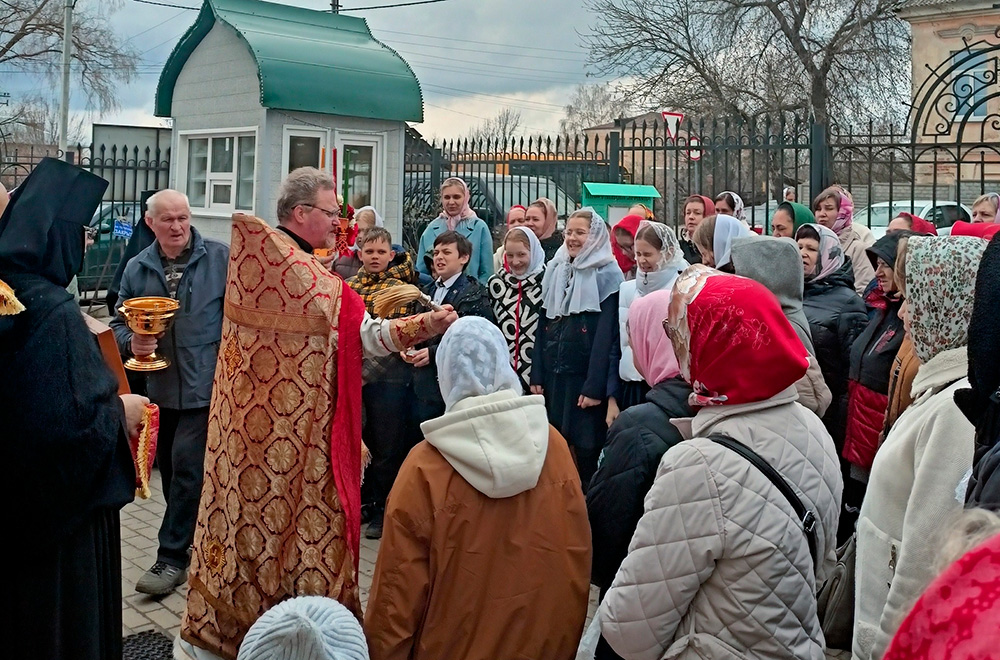 17 апреля, в пятницу Светлой седмицы, в Подворье Свято-Троицкого Скрафисо-Дивеевского монастыря в Арзамасе состоялся традиционный праздник Пасхального Причастия для учащихся Березовской школы. Организовали мероприятие помощник по религиозному образованию и катехизации благочинного Арзамасского района протоиерей Лев Бушуев совместно с администрацией школы и родителями учащихся.