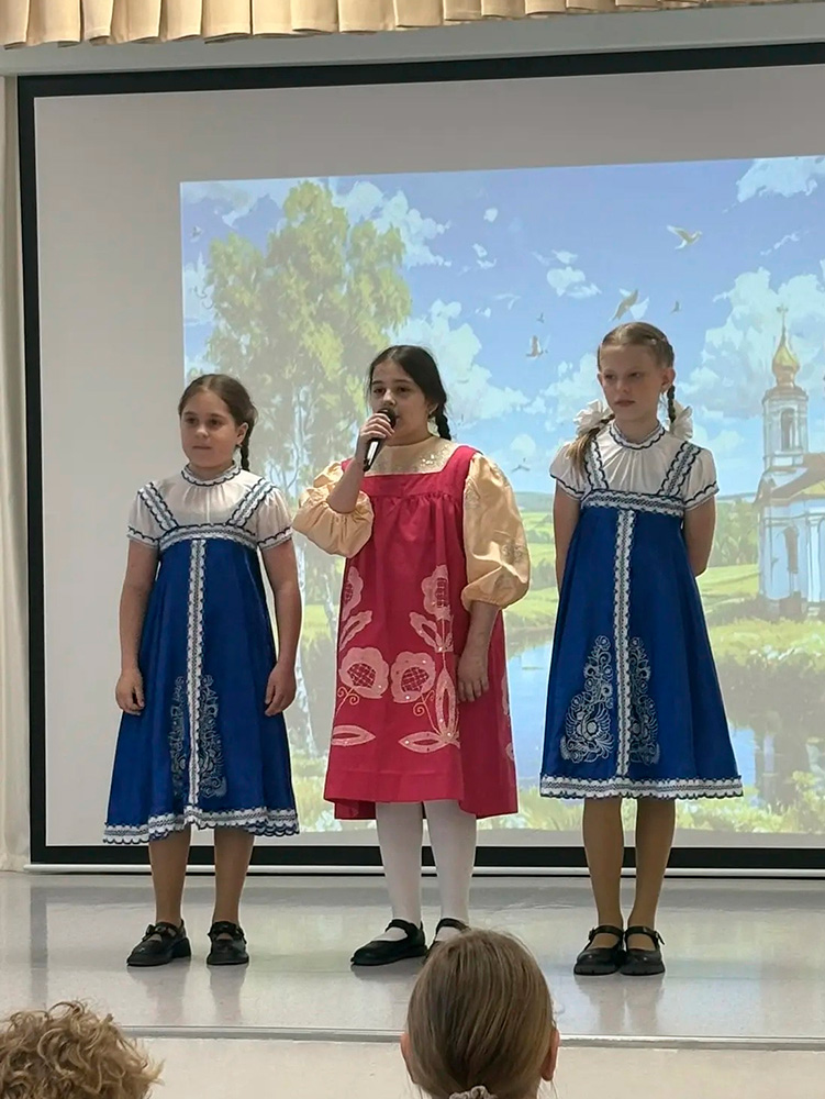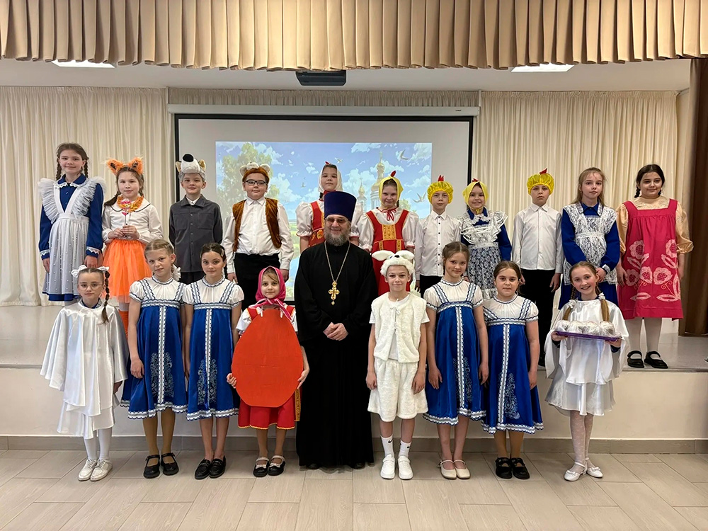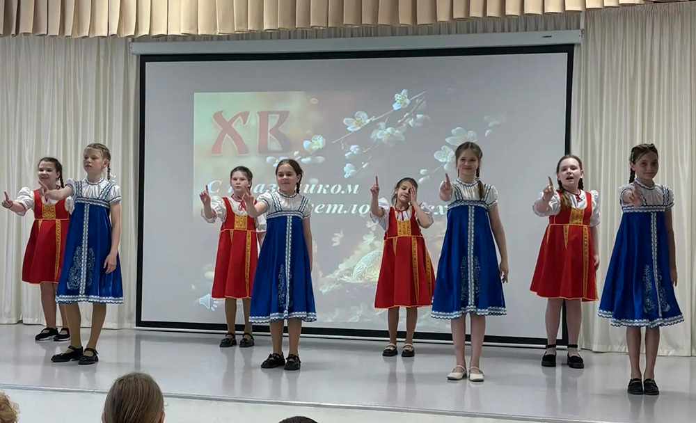 Школьники гостям показали целое представление, которое называлось «Пасха путешествует по миру». Дети в красивых русских нарядах исполняли пасхальные стихи, пели песни и танцевали, участвовали в викторине, посвященной Светлому Христову Воскресению.