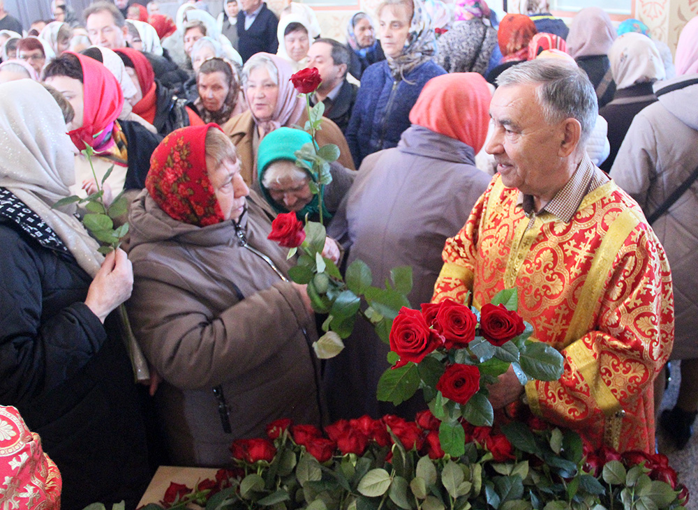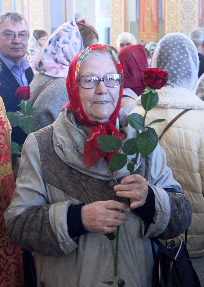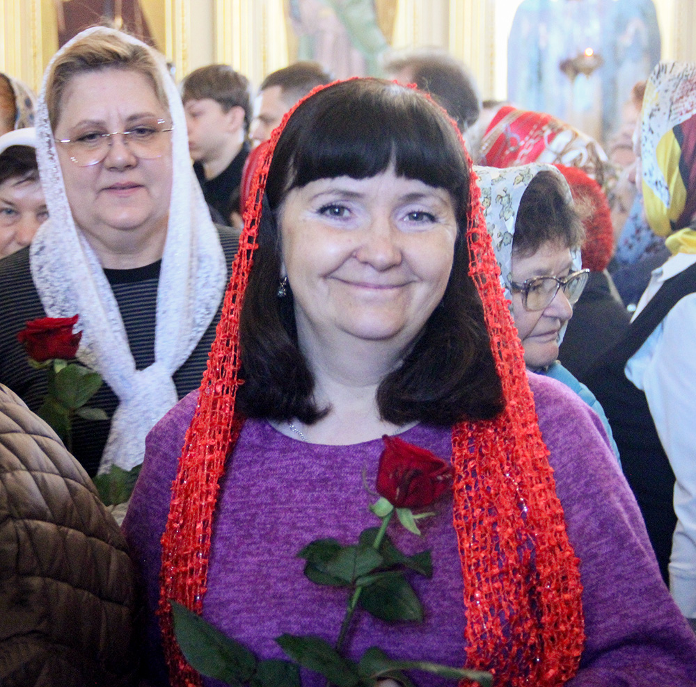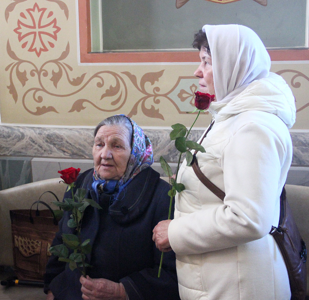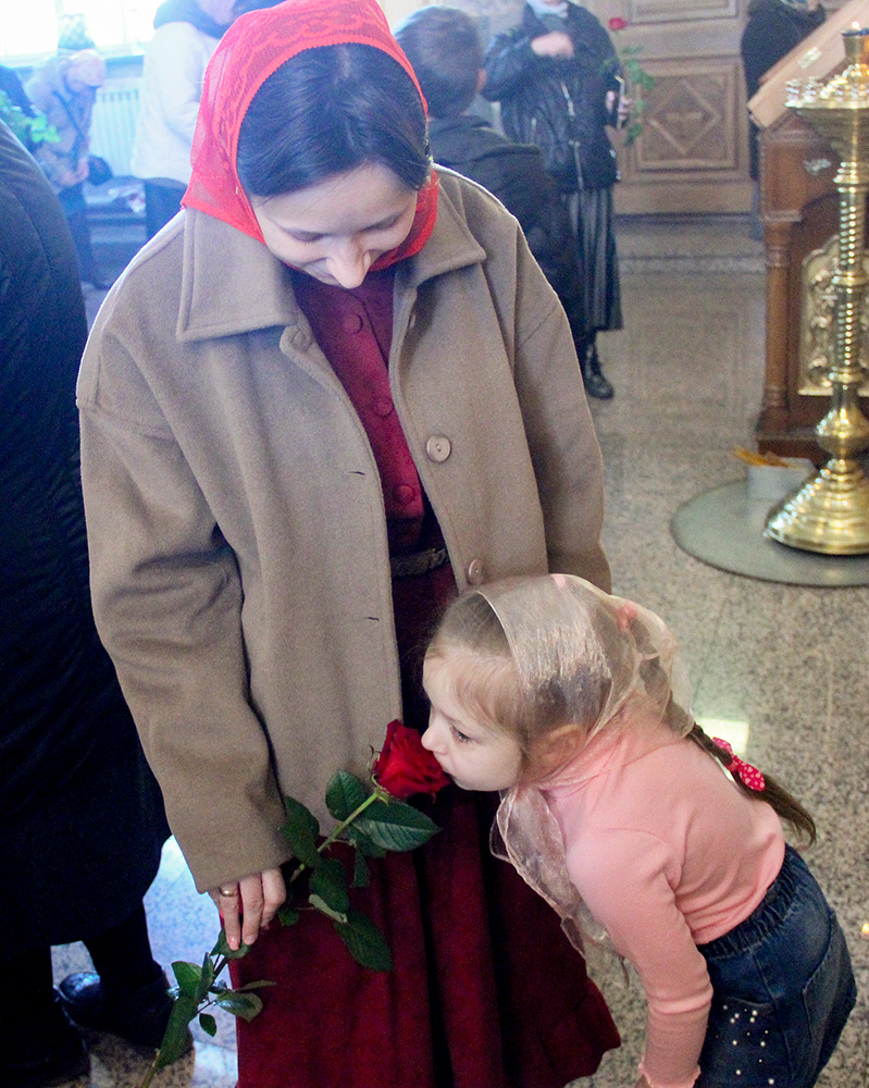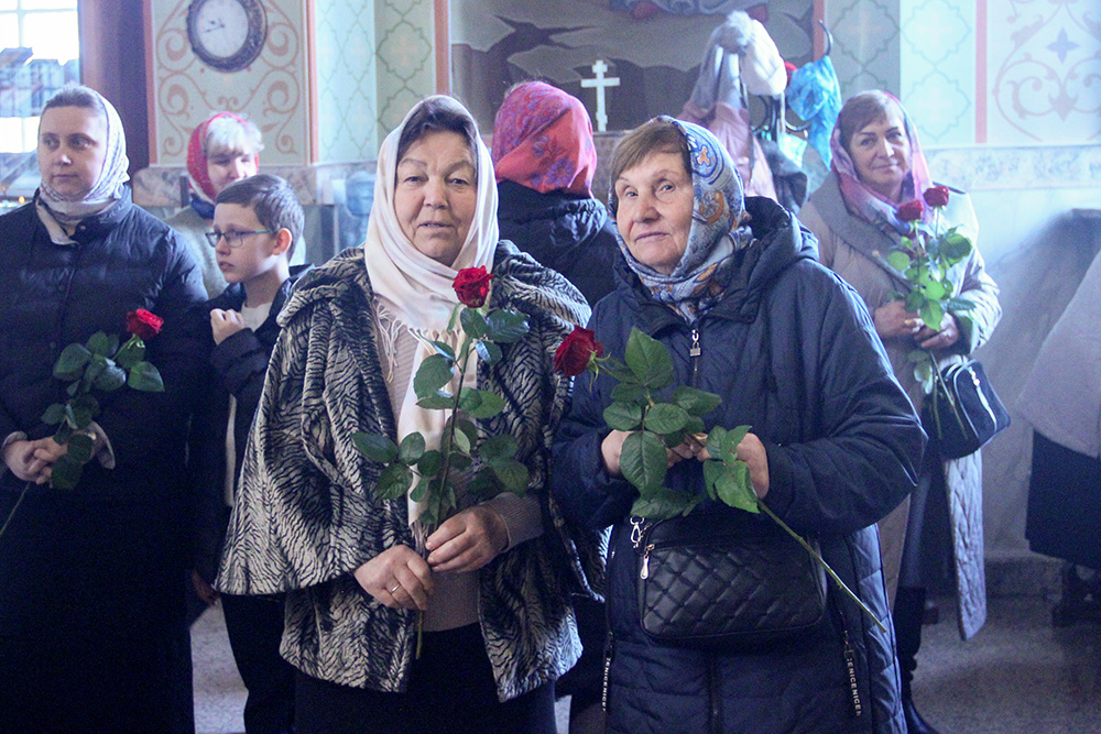 После богослужения по традиции всем прихожанкам были подарены цветы.