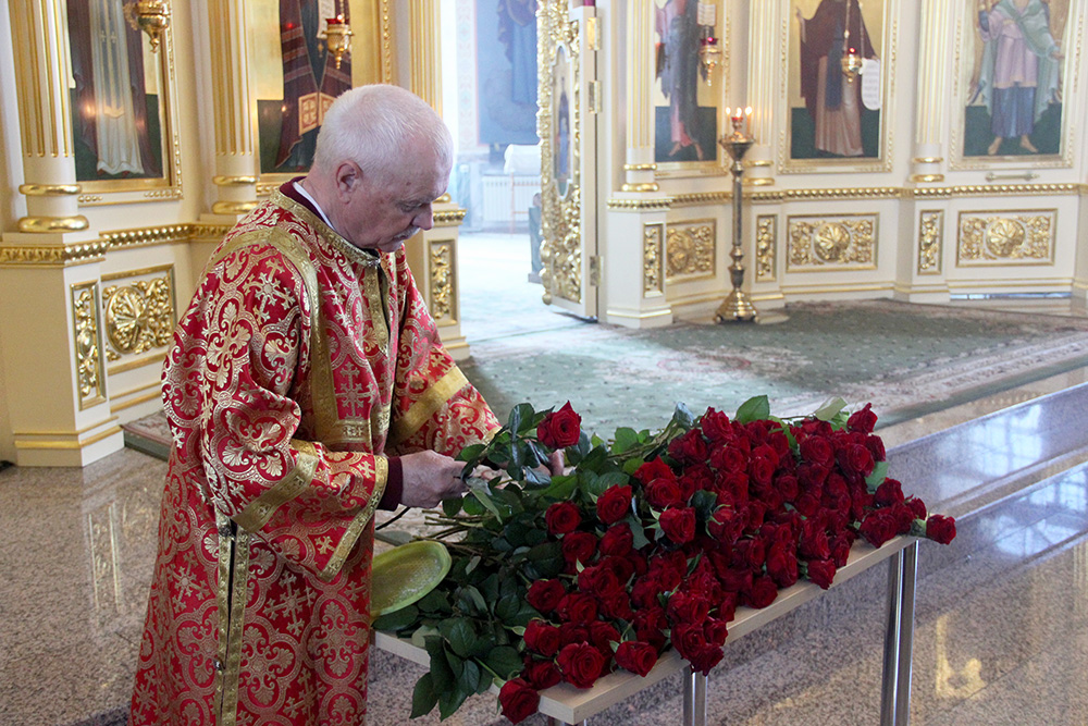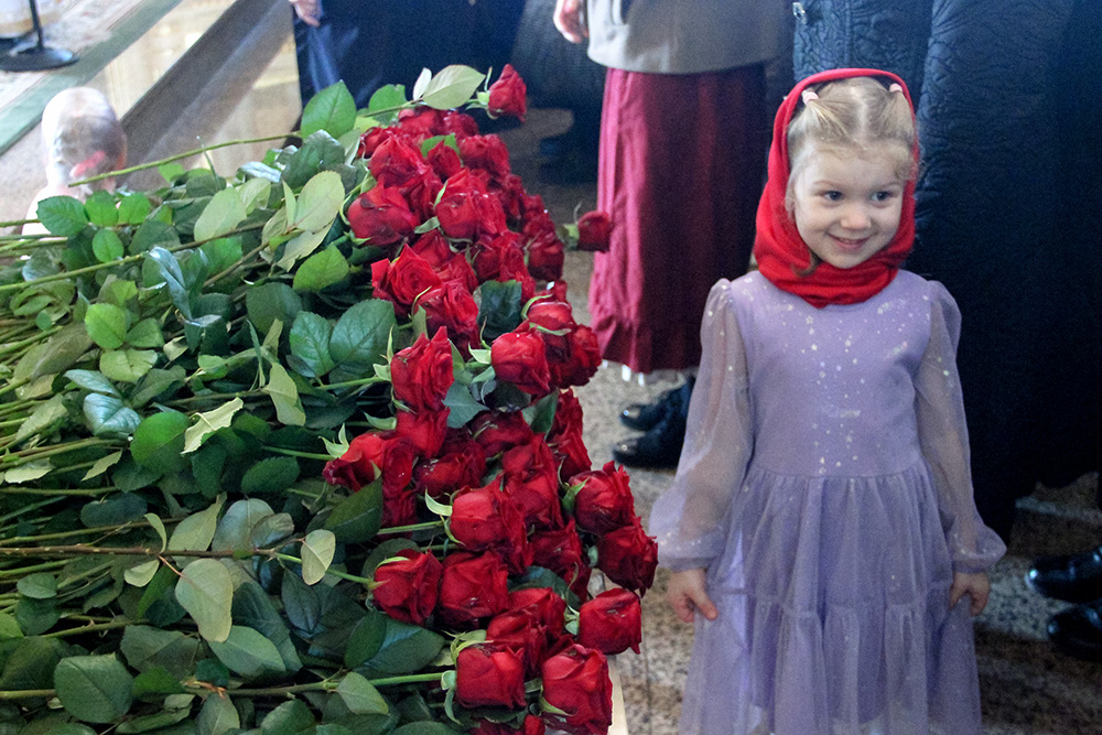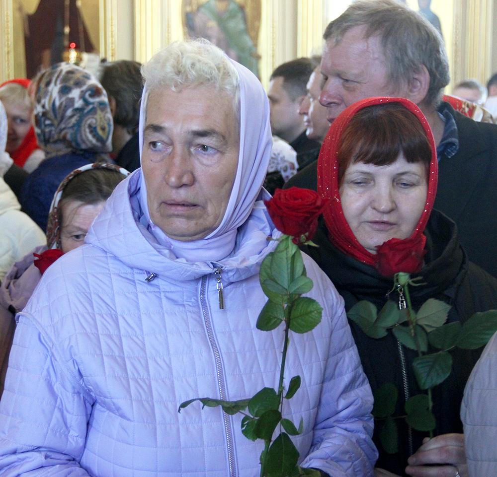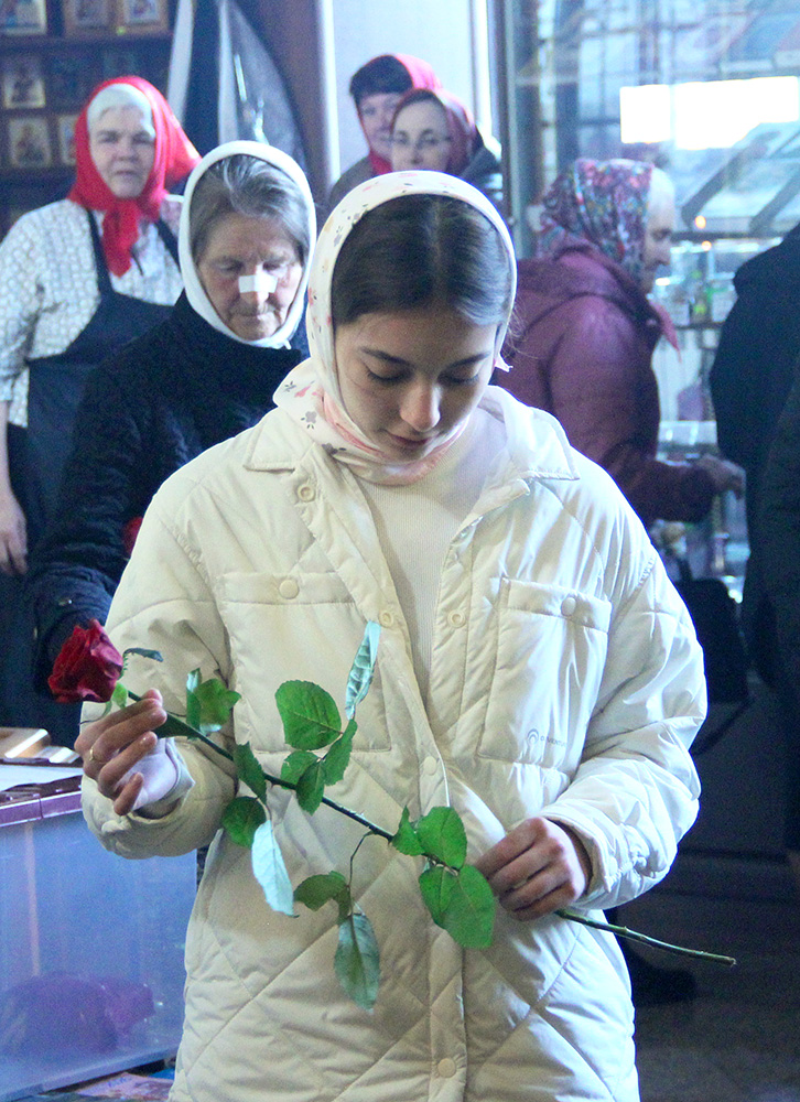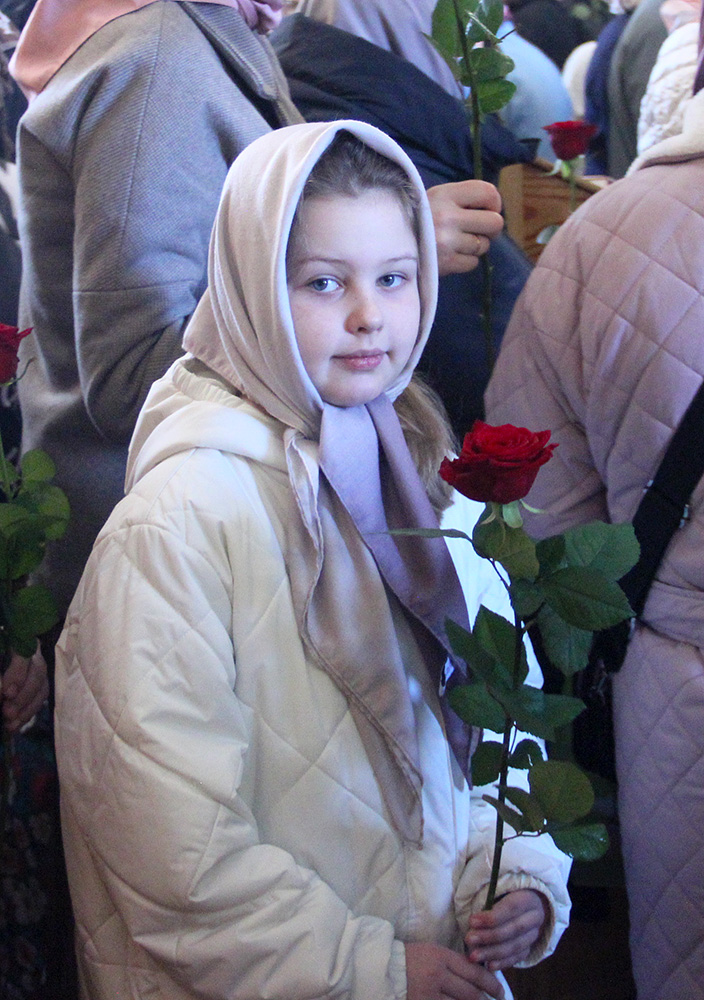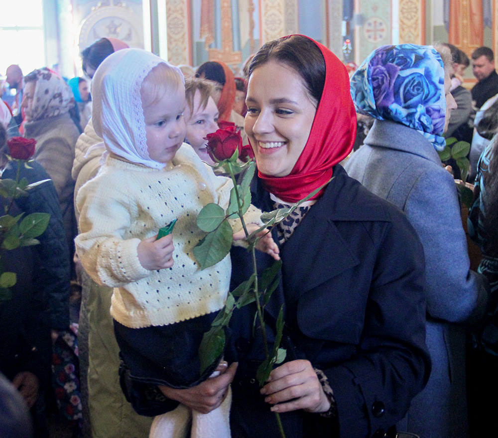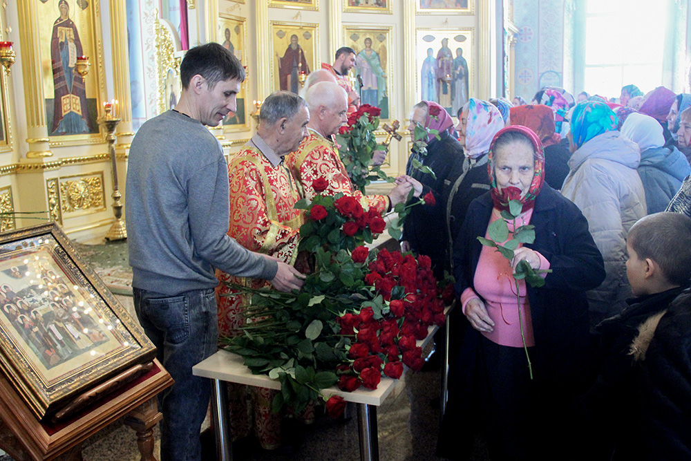 После богослужения по традиции всем прихожанкам были подарены цветы.